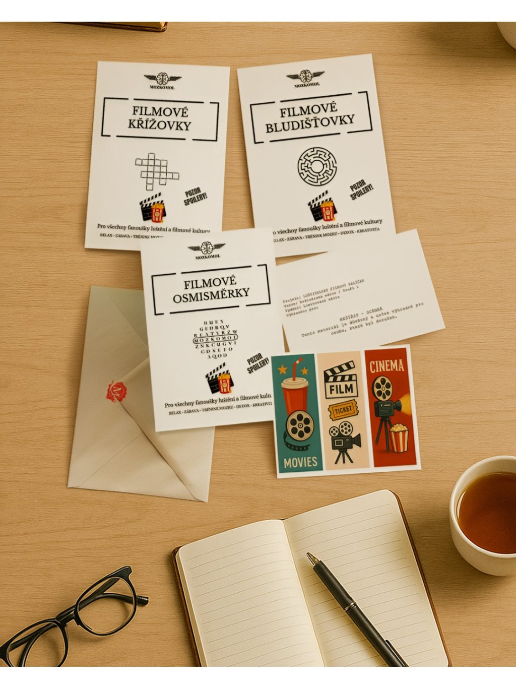Originální brožury plné křížovek, osmisměrek a bludišť – ideální pro milovníky filmů od 15 let.