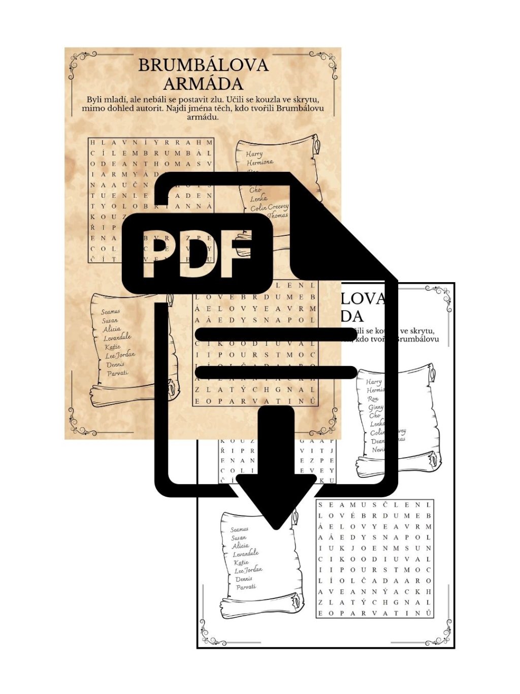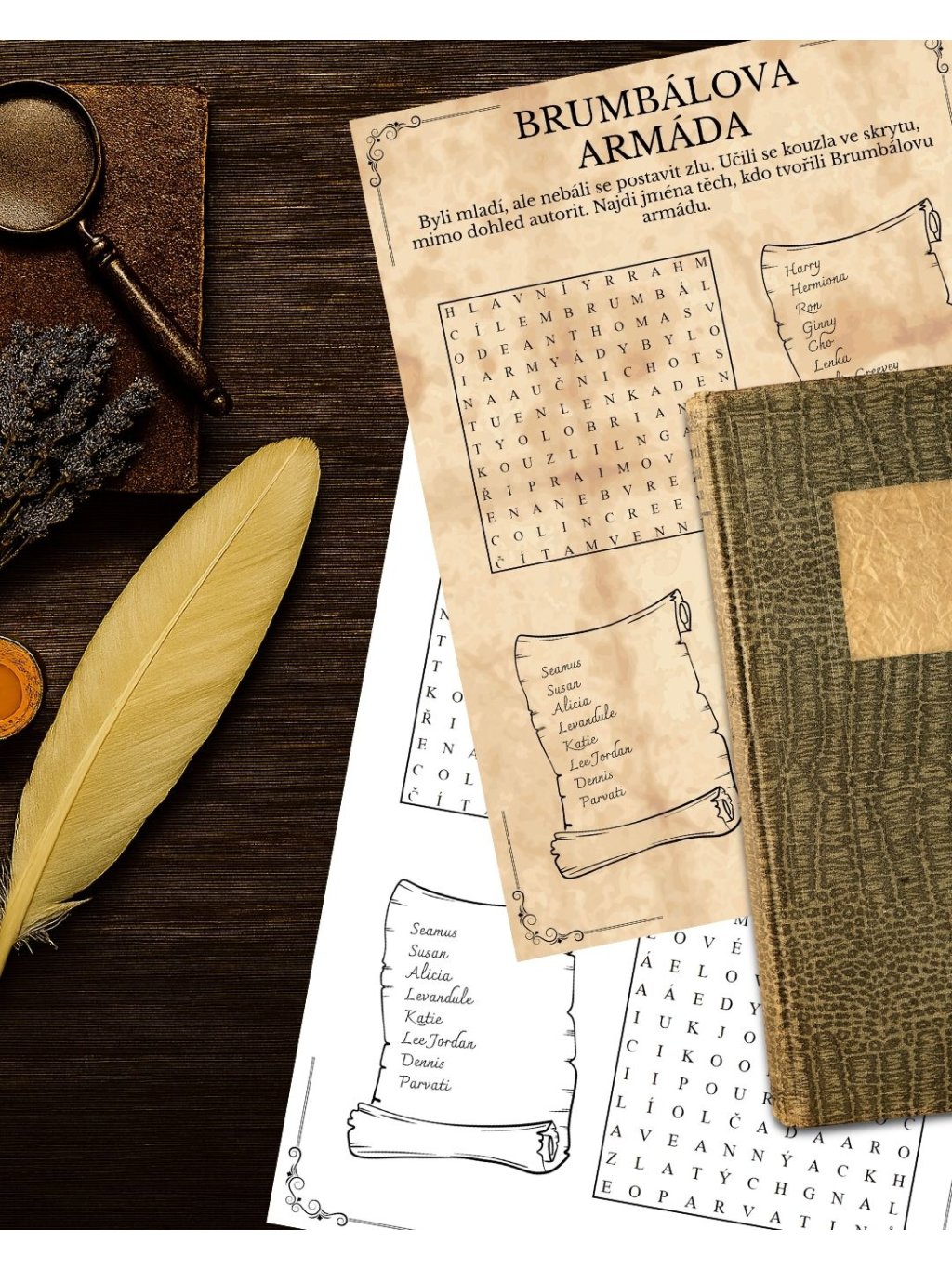 Osmisměrka o skupině, která si řekla, že nebude jen nečinně přihlížet. PDF k tisku nebo na tablet – pro ty, kdo by si na vlastní triko nacvičovali obranná kouzla v prázdné učebně.