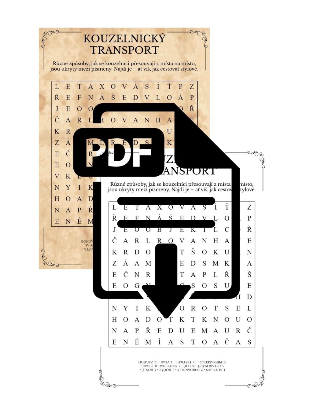 Osmisměrka plná způsobů, jak se přesouvat magicky a stylově. PDF k tisku nebo na tablet – pro ty, co by radši mizeli z pokoje po svém.