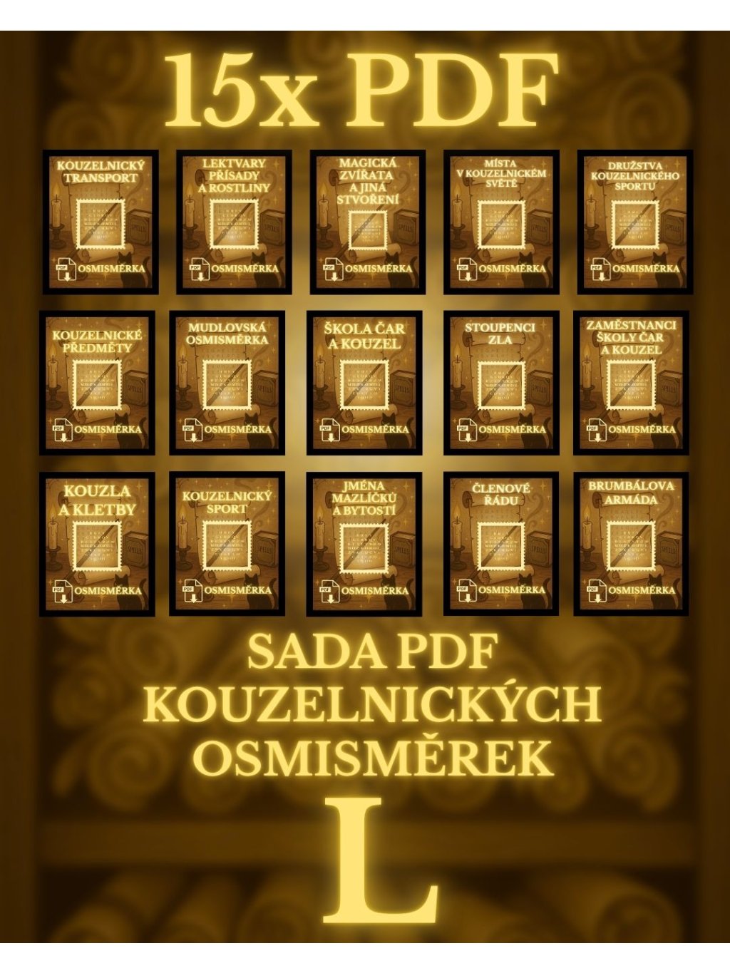 Výhodná sada všech 15 kouzelnických PDF osmisměrek:
